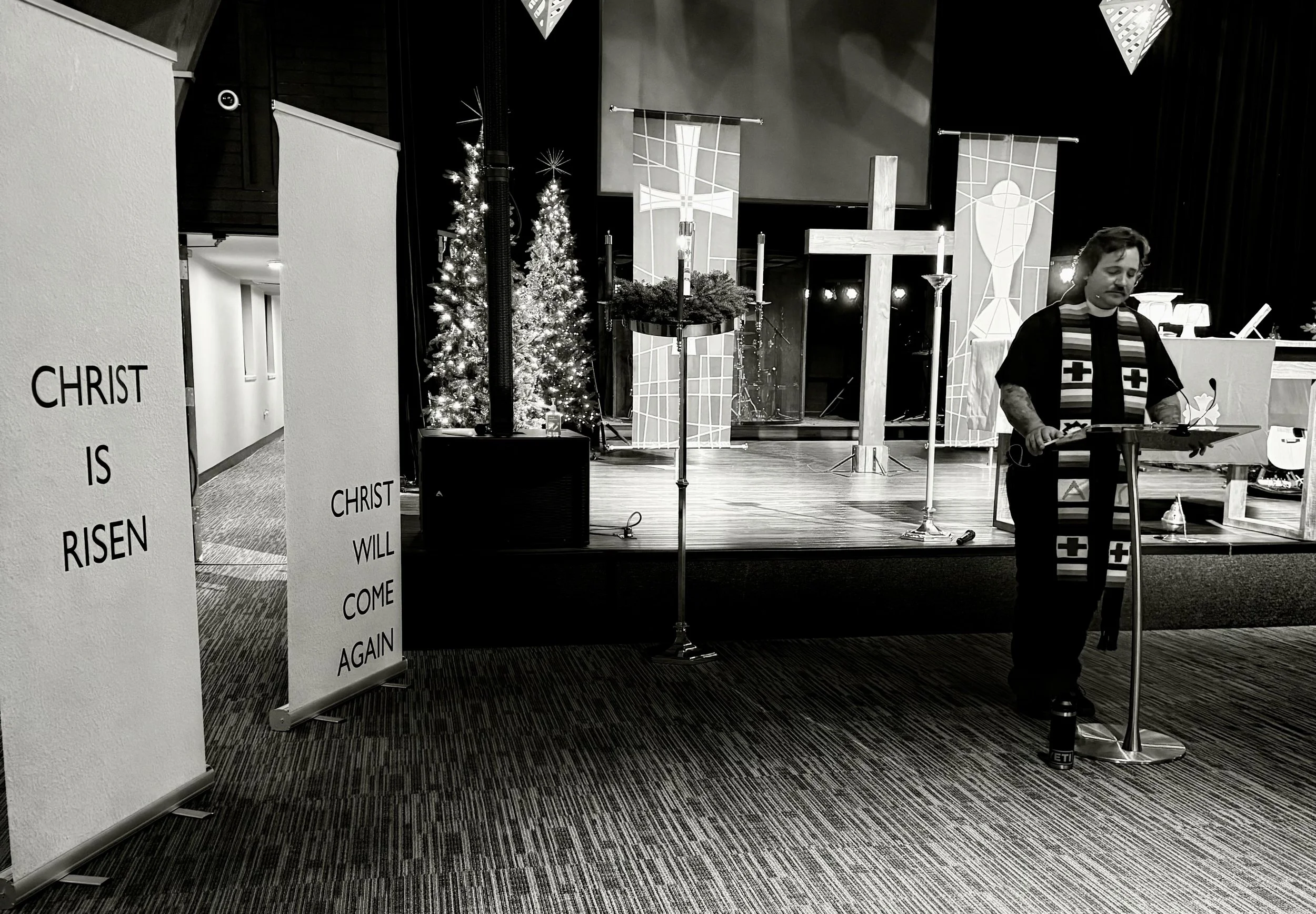 At the center of our life together is worship, gathering around Word and Sacrament. Our liturgy follows a rhythm that draws us into God’s presence, grounds us in His Word, and sends us back into the world nurtured and sustained by the body and blood of Jesus.